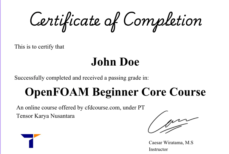 This course make me feel confortable with the navegation and manipulation openfoam and show me the most important parts of it, i recommend a lot
