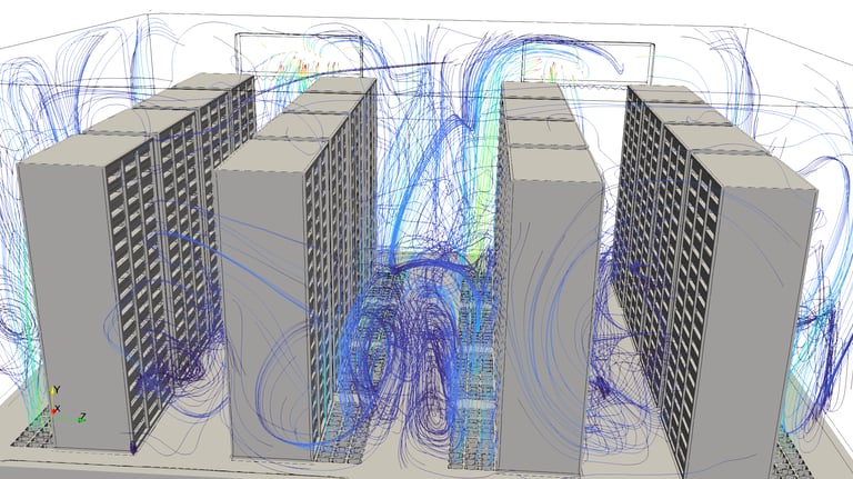 One of the main challenges in data center cooling is preventing the formation of hotspots. Hotspots occur when certain server racks receive inadequate cooling airflow, causing temperatures to rise above safe operating limits. CFD simulations allow engineers to identify these regions by visualizing temperature fields throughout the data center. By detecting hotspots early, designers can adjust rack arrangements, cooling unit placement, or airflow management strategies to ensure that all equipment receives sufficient cooling.